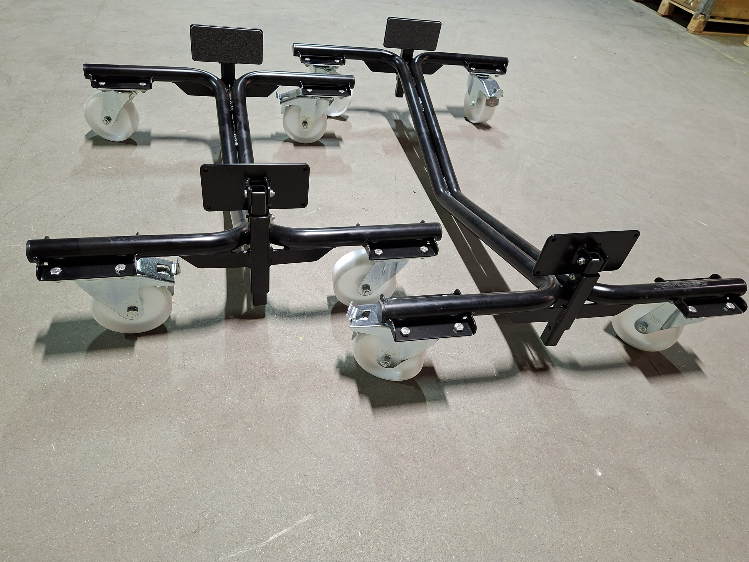 Mustaksi pulverimaalatut venepukit kahdella eri leveydellä, JOR308 800mm, ja JOR309 1240 mm