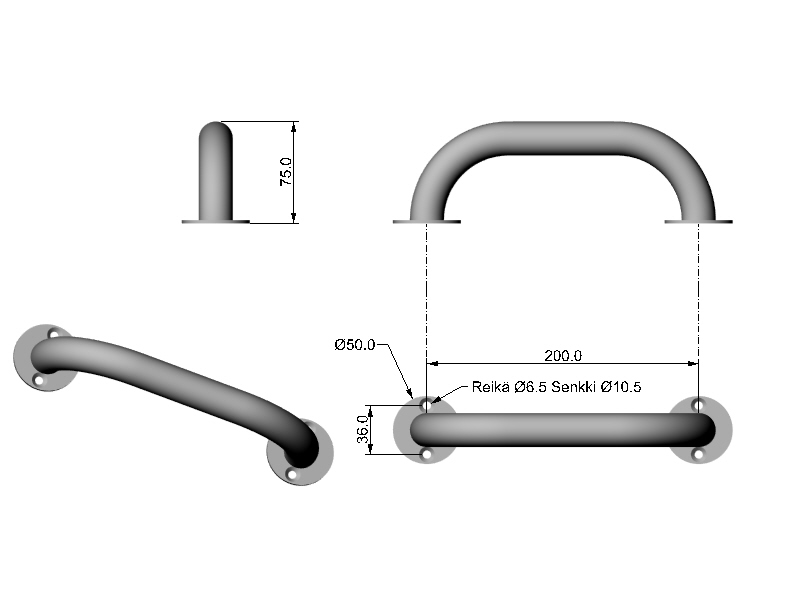 Valmistettu ruostumattomasta teräksestä ja kiillotettu korkealuokkaisella elektrolyyttikiillotuksella. Kiinnitystarvikkeet eivät sisälly hintaan.