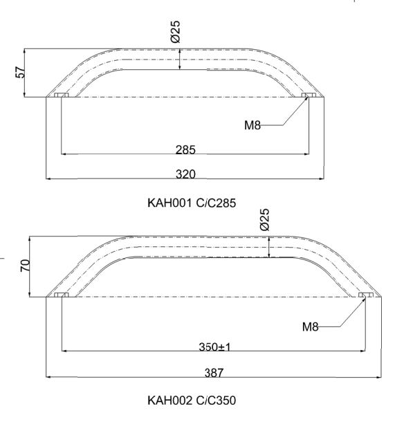 Valmistettu ruostumattomasta teräksestä ja kiillotettu korkealuokkaisella elektrolyyttikiillotuksella. Kahvojen kiinnitys M8-ruuvilla altapäin, ruuvit eivät sisälly toimitukseen.