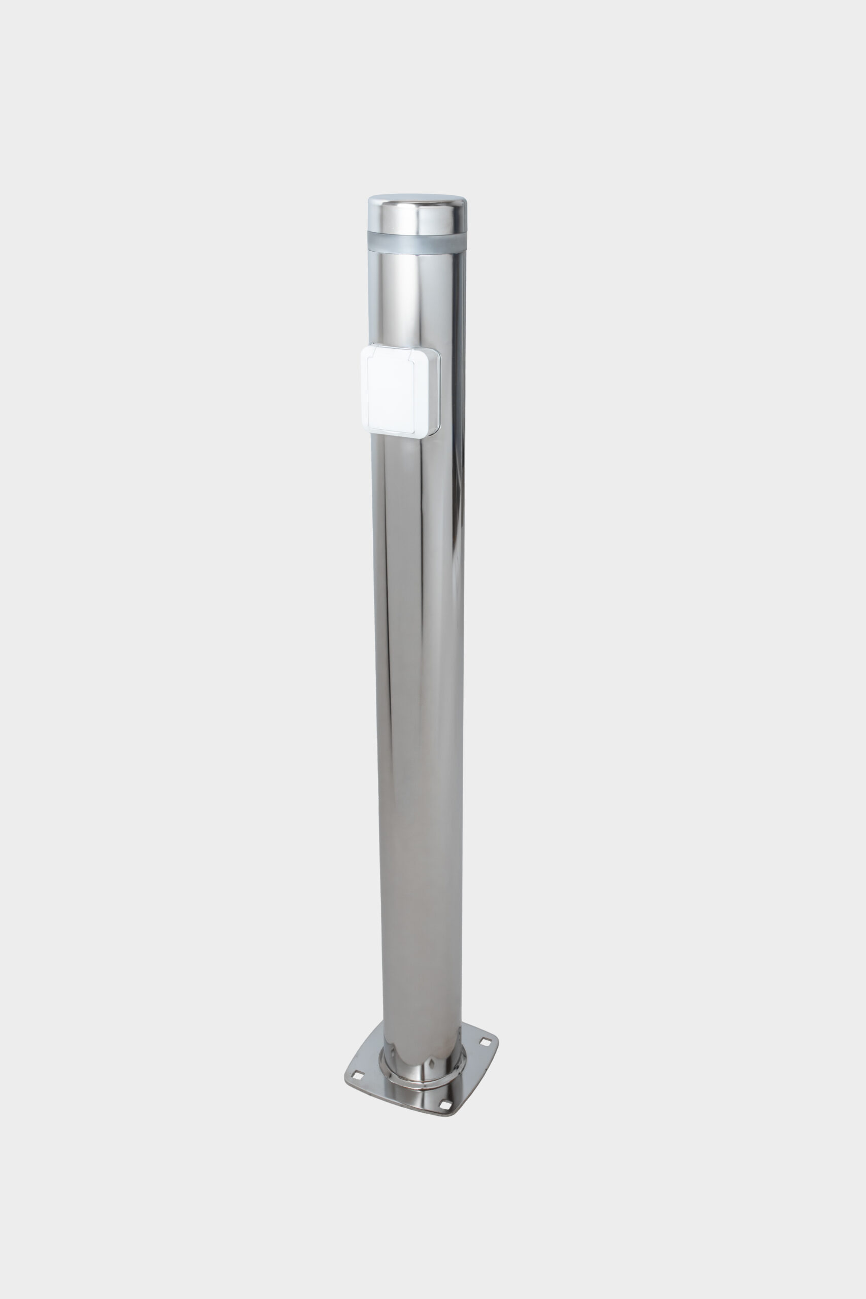 Virtalähde ulkokäyttöön. Ajaton ja kestävä ratkaisu kaikille rannoille. Runko on ruostumatonta terästä, viimeistelty tyylikkääksi elektrolyyttikiillotuksella.